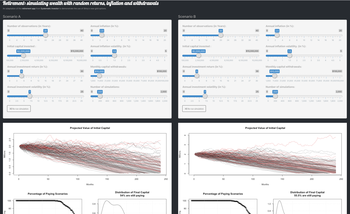 tags$h2("Retirement: simulating wealth with random returns, inflation and withdrawals"),